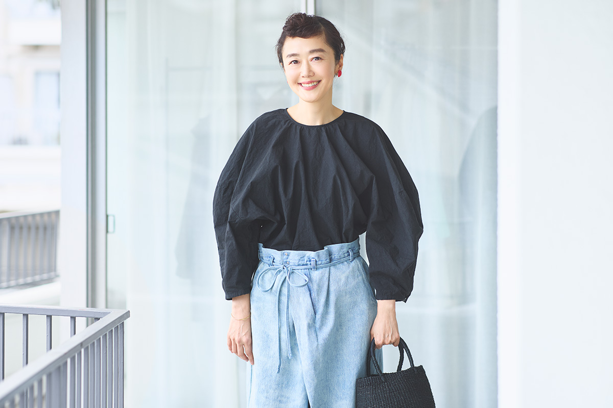 「大好きなブランド『タロウ トウキョウ』は、ほどよくトレンドを取り入れたベーシックで上質な服が揃います。大人っぽく挿し色を楽しめる『KAMIHITOE』のバッグは、装いのアクセントになってくれます」