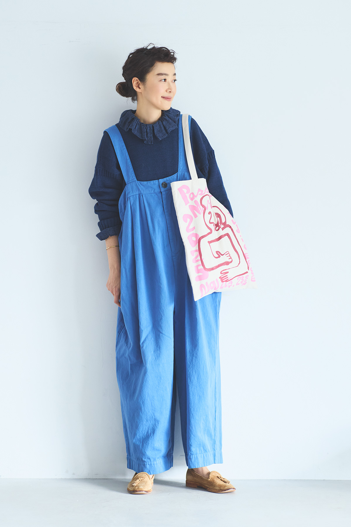 ニット¥37,400、ブラウス¥31,900、サロペット¥39,600/すべてネストローブ、トートバッグ¥6,930/パッセージ、その他/本人私物
