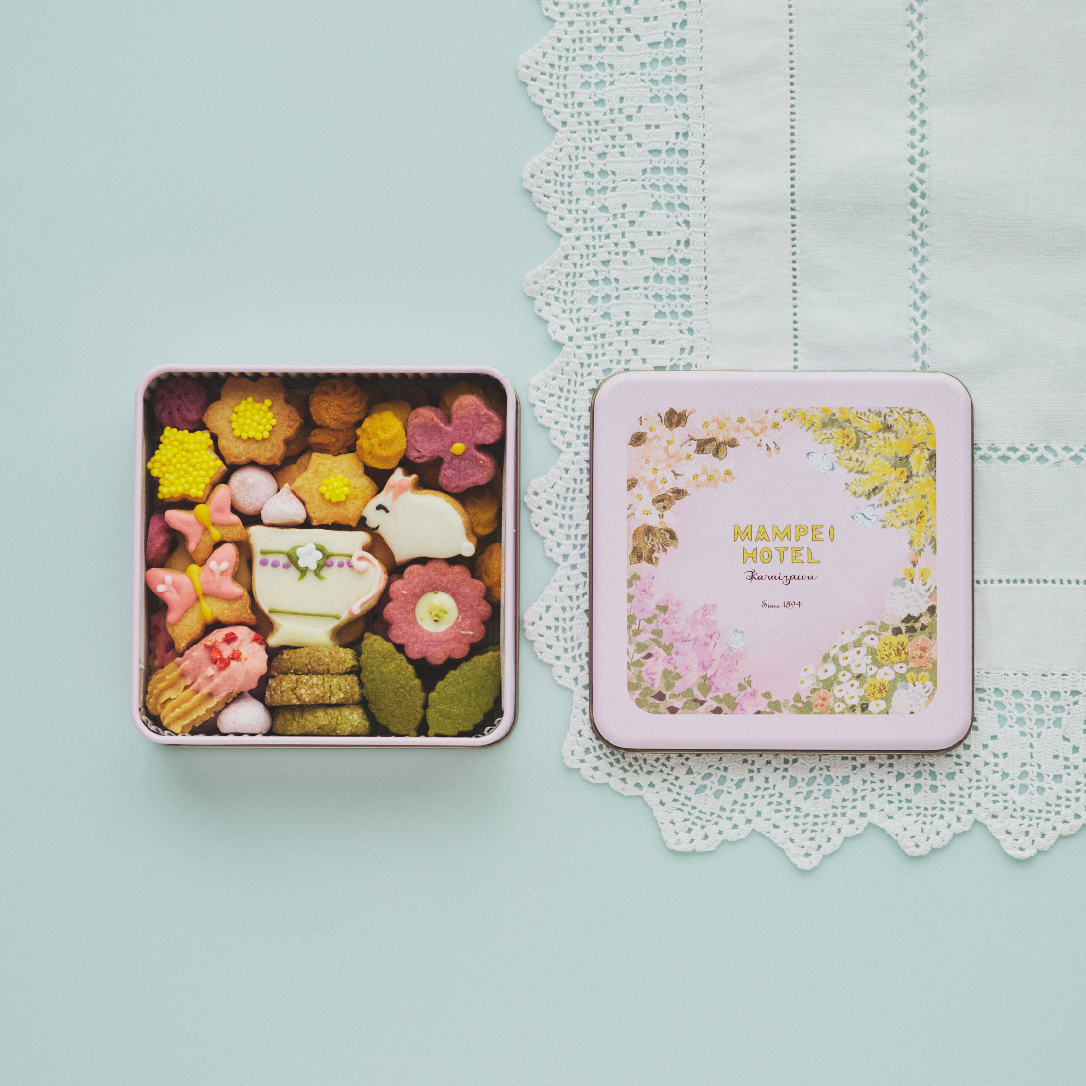 万平ホテルフラワークッキー缶・春(11種類)¥5,800/万平ホテル(万平ホテル 公式ホームページ)