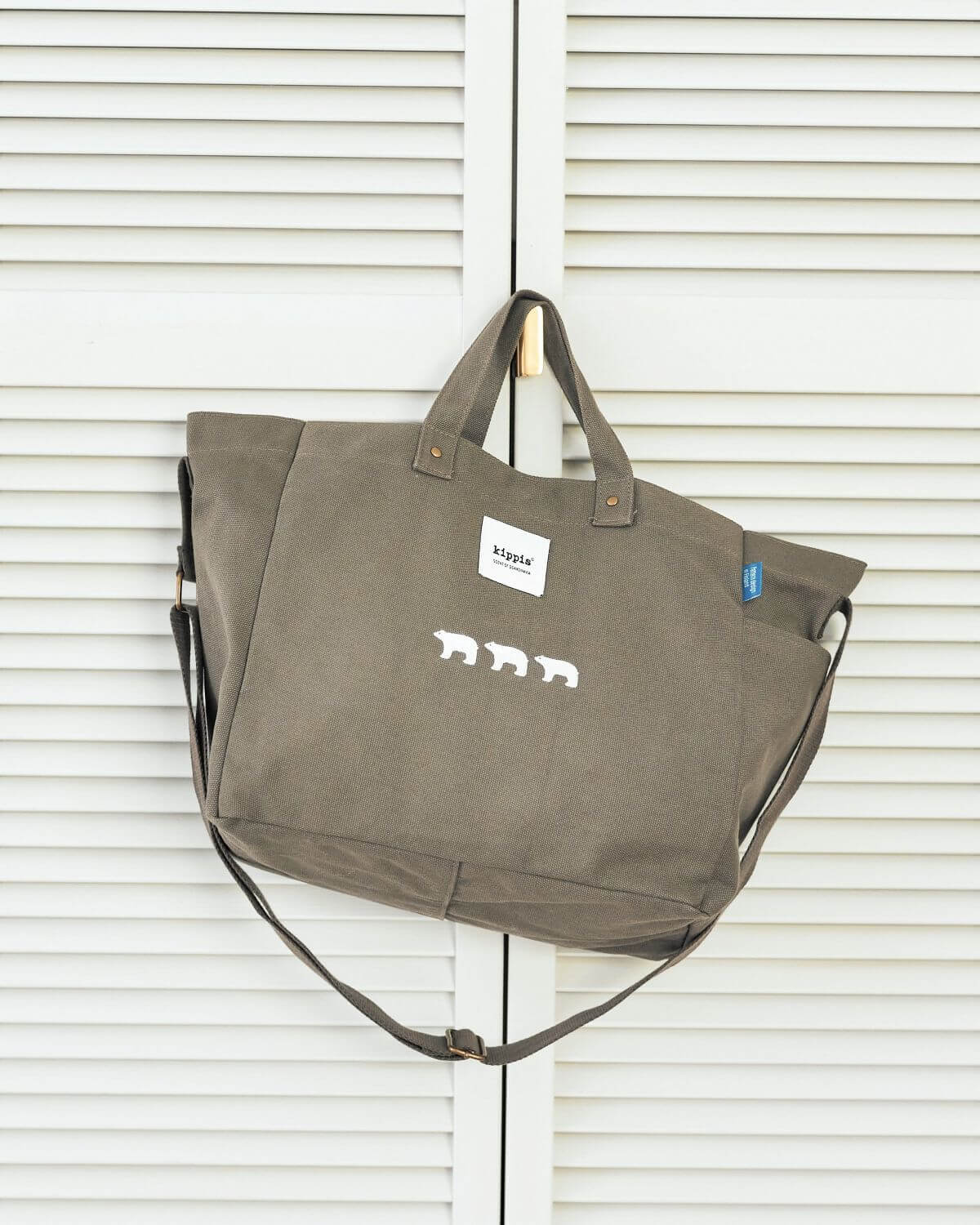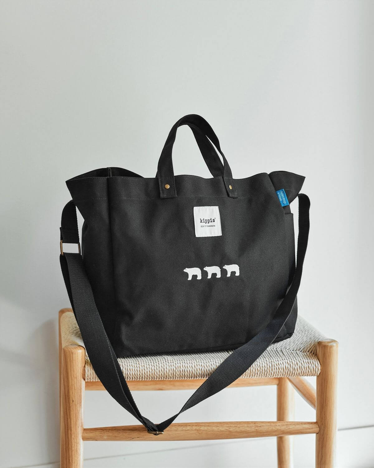 くったりとしたシルエットがこなれ見えするオーガナイズショルダーバッグは、キャンバス風コットン生地に、しろくまを白糸刺しゅうした飽きのこないニュートラルなデザインで、通勤はもちろん、ママバッグや小旅行にもおすすめです。使いまわしやすいブラックとチャコールグレーがラインナップ。どんなファッションにも合わせやすくて◎。