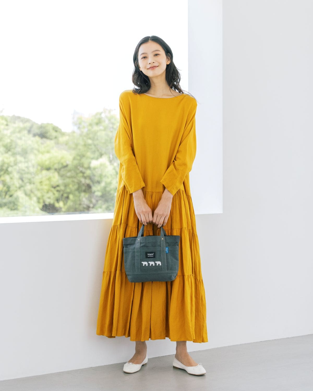 どんなお洋服にも合わせやすいのが嬉しいポイント。8ポケットバッグしろくま チャコールグレー¥3,300/kippis(宝島チャンネル)、ワンピース¥61,600/スズキ タカユキ(スズキ タカユキ)、バレエシューズスタイリスト 私物
