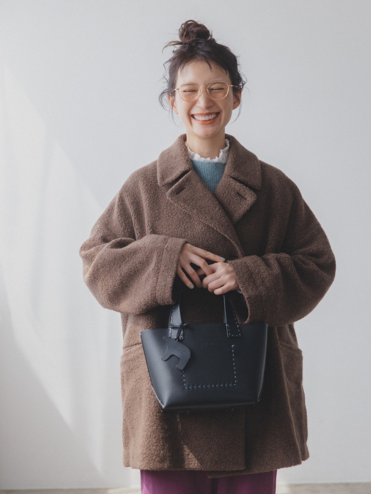 レイヤードは秋冬の着こなしの楽しみ。今季の注目カラー、ブラウン系のコートは今回のコラボバッグとも好相性! 着こなしにレザーバッグを取り入れれば、カジュアルなコーディネートに大人シックなニュアンスをプラスできます。ちょっと重たさを感じさせるコートコーデも、バッグにトッピングしたシロクマチャームが動きを加えて、軽やかな印象に。