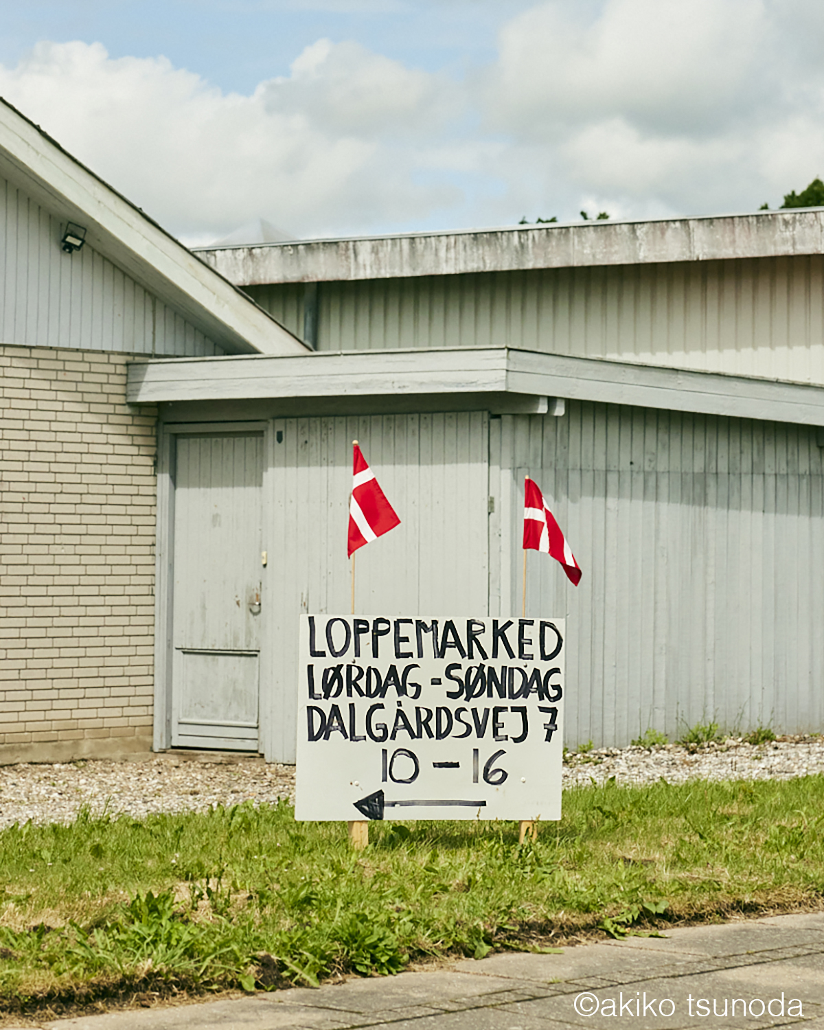 オールボーへと向かうドライブの途中、サンタさんが「あっ、あそこにあるよ」と、道路脇の小さなデンマーク国旗や「Loppe」「Lopper」(フリーマーケットの略)の看板を次々と見つけて教えてくれました。