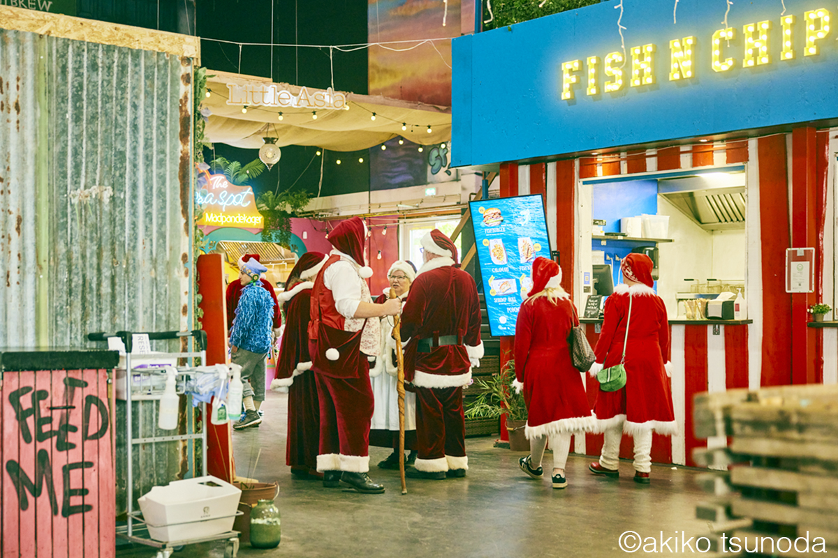 サンタ会議の合間には、仲良しのサンタさんたちと一緒に壁画を巡るウォーキングツアーにも参加しました。