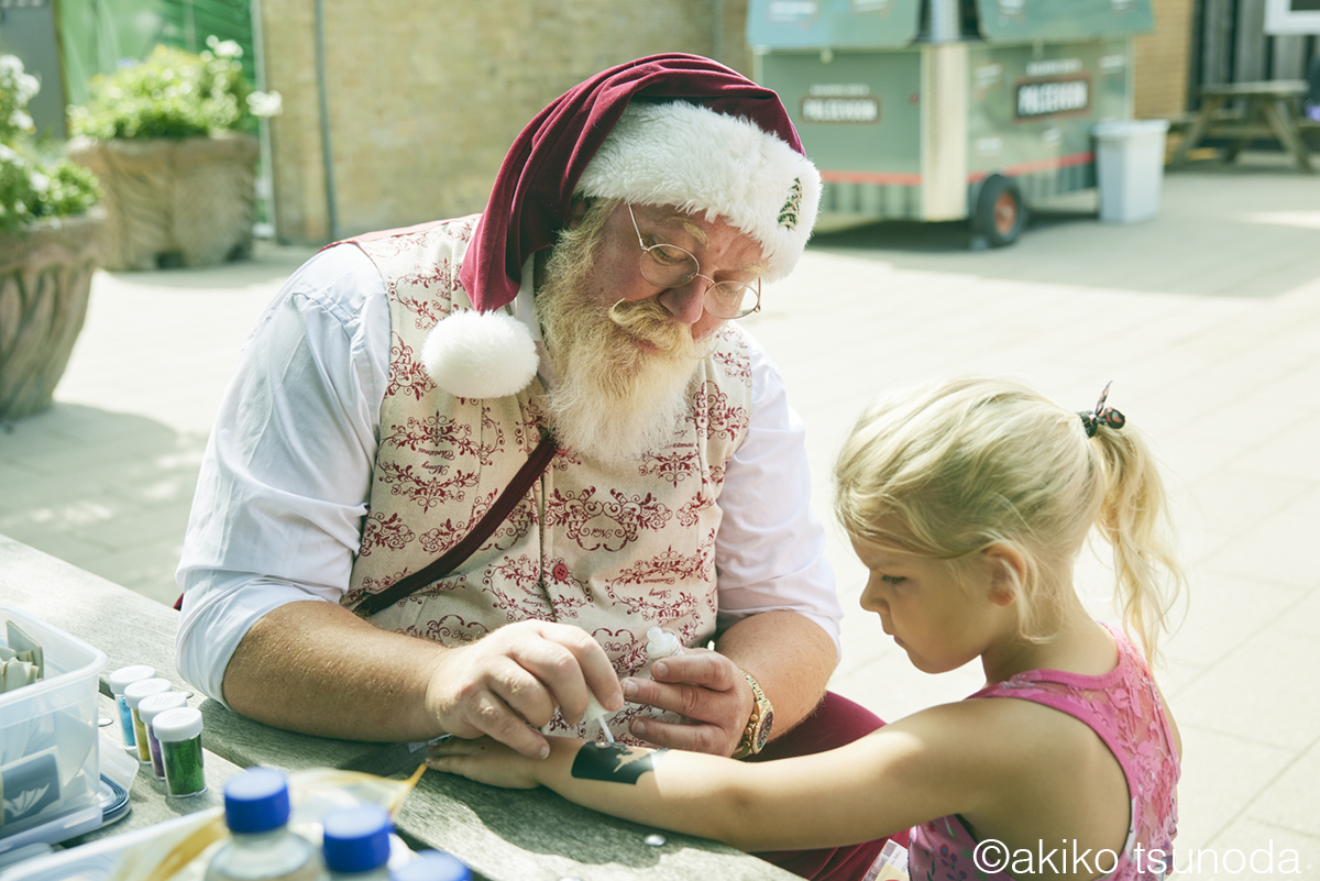 サンタさんと仲良しのトナカイやシロクマを探したり、子どもたちとボディペイントやゲームを楽しむサンタさんの姿も見られました。