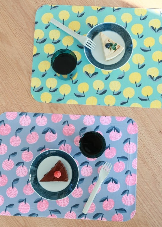 表面にビニールコーティングを施しているため、お手入れも拭くだけで簡単なPVCプレースマット。シロクマ柄や花柄、果物柄までポップなデザインがセレクトされています。お子様用のランチョンマットとしても人気です。