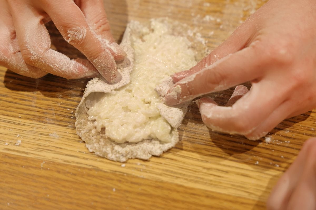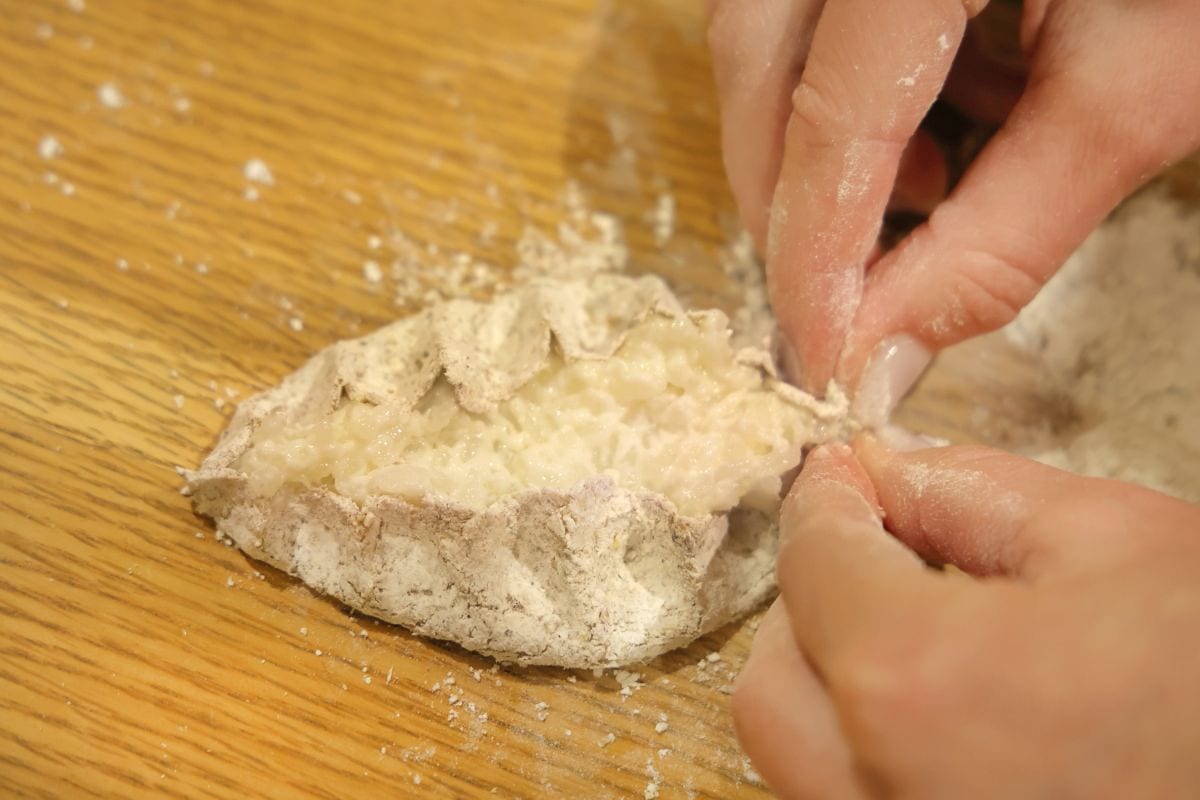 つまんでひだを作るのは、餃子を包むときの要領に似ている気がします