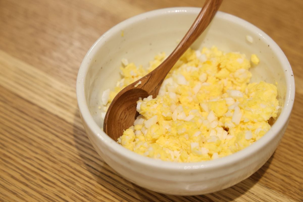 日本だと卵とマヨネーズを混ぜてサンドイッチにのせることが多いですが、カルヤランピーラッカのように生地にバターが入らないパンの場合には、この卵バターがバランスよいのかもしれません