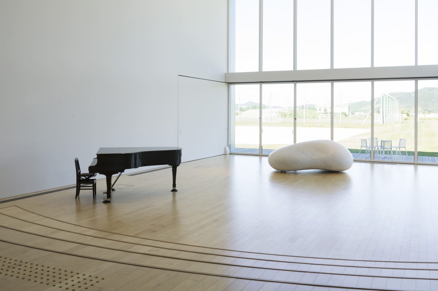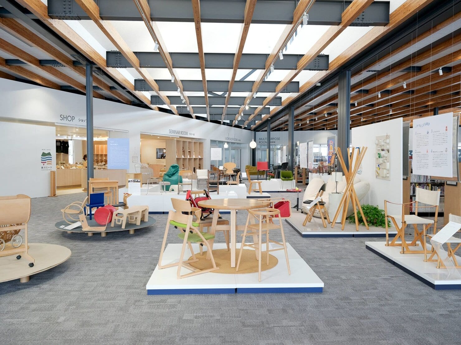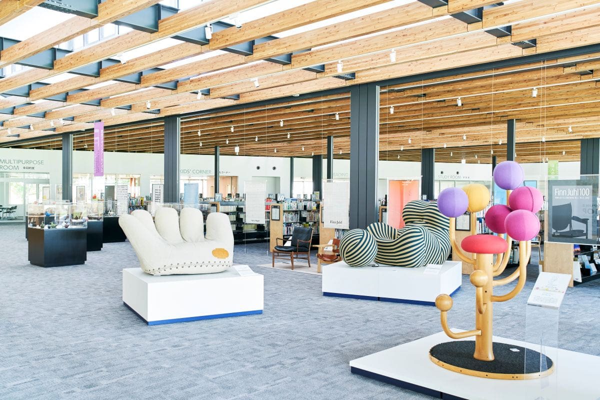 東川町が有する写真や家具デザイン、大雪山の文化を大切に広める活動を目的に、ギャラリーや図書館を併設したせんとぴゅあ。国際交流や日本語学校、住民の自主的な活動など、東川町の文化が集まった場所にも、様々なアートが展示されています。