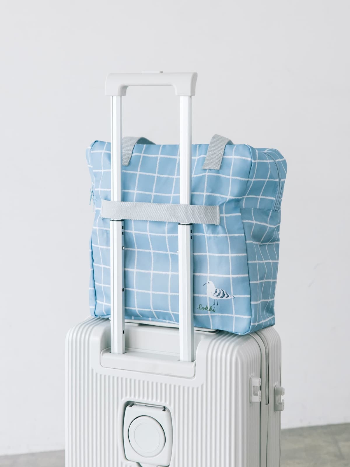 スーツケースに引っ掛けて持ち運べるのが便利。ファスナー付きで中身が飛び出す心配がないのも嬉しいポイント。