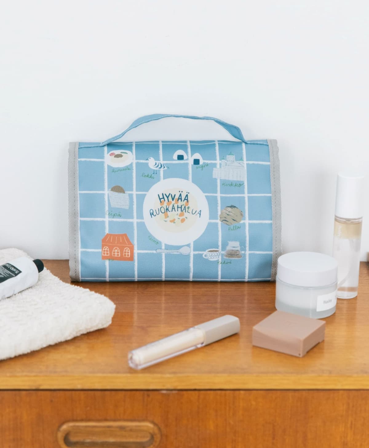 旅の煩わしさをお助けする3種のアイテムを、【Hyvää ruokahalua】のイラストを使って作りました。咲楽さんが旅する中で、ここがいいなというポイントをまとめました!