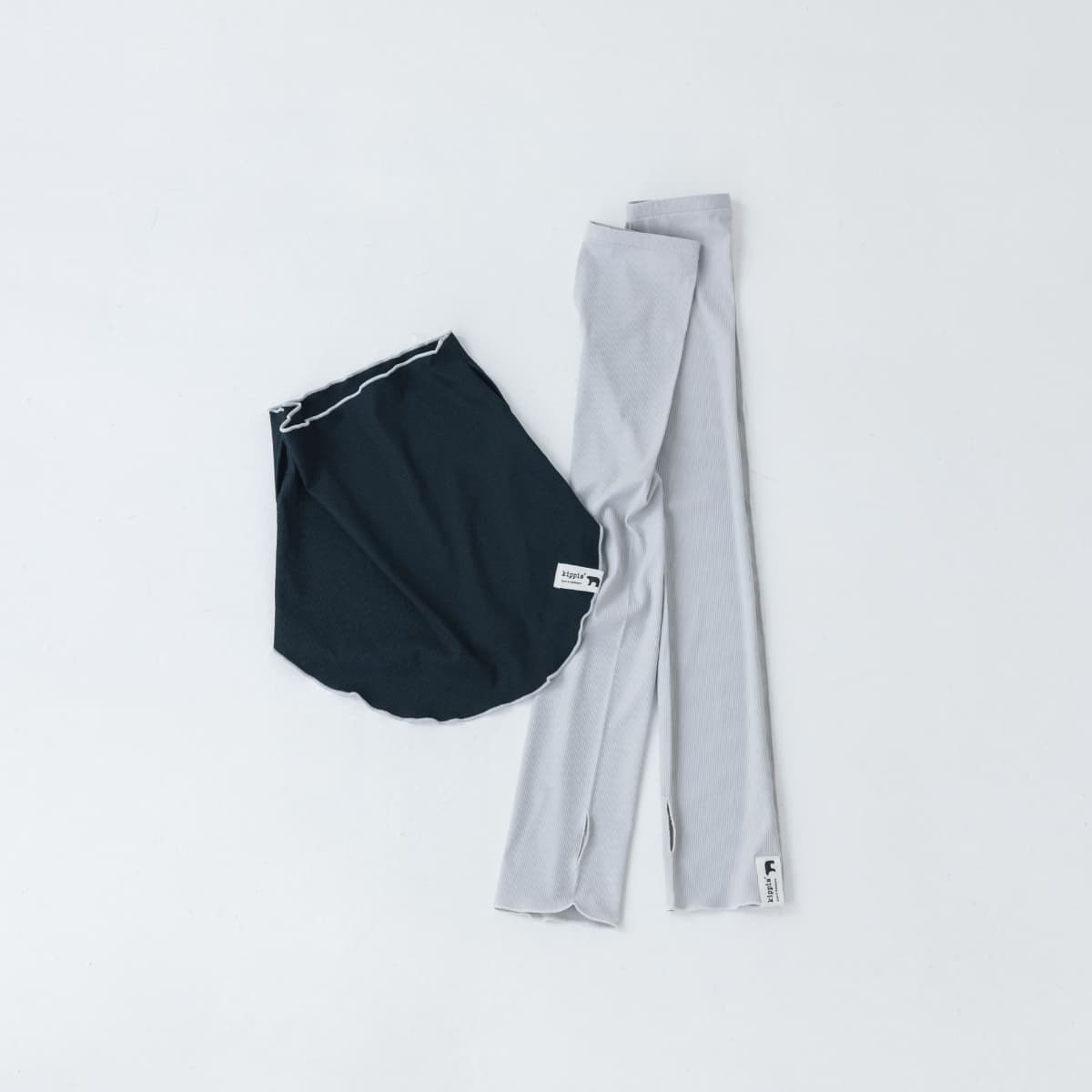首はもちろん、伸ばせば顔の下半分をカバーできるUVカット生地のフェイスカバーと、ひじ上から手もとまでカバーできるアームカバーが登場。コーディネートしやすいベーシックカラー(ブラック、ライトグレー)に、kippisのロゴをあしらったタグがワンポイント。