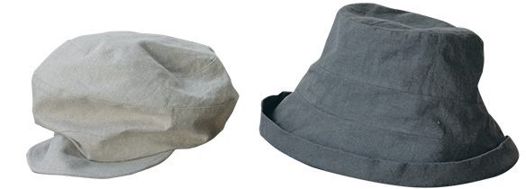 ツバが広くすっぽりかぶれる帽子は、日よけの強い味方。サンドウォッシュ加工を施した、ビンテージライクなリネンを使った帽子をベーシックなカラーで揃えました。ツバの部分にワイヤーが入っているので、形を自由に変えられ、かぶる人を選びません。